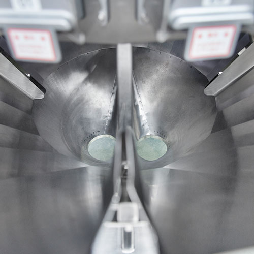 4. Machine frame, discharge chute with compatible design, single discharge chute gate can change to double with twin packaging machine when just one kind of product.