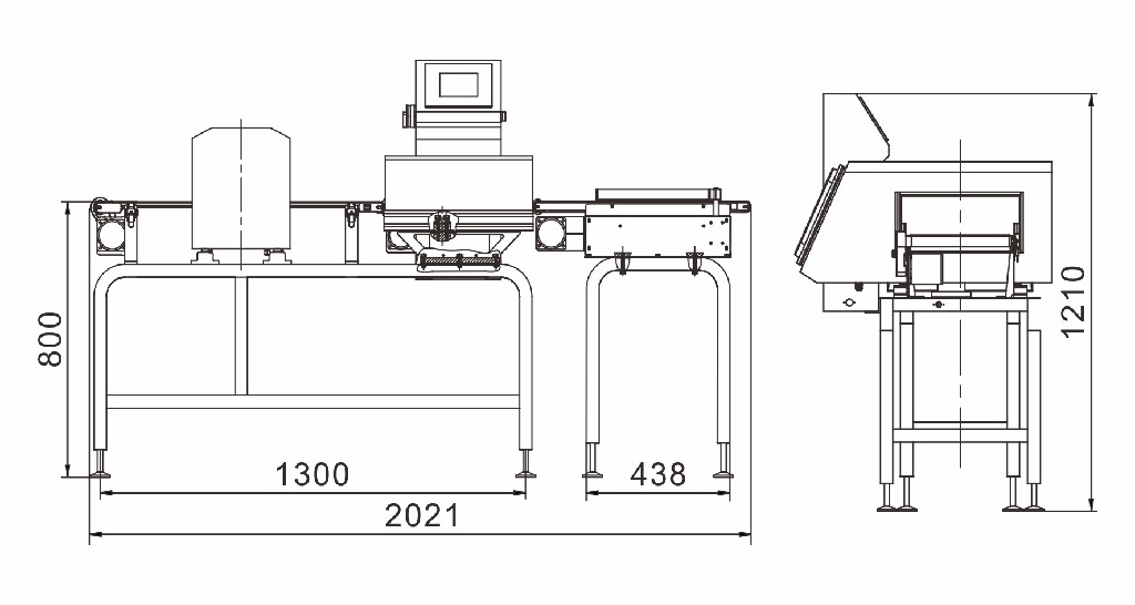 It combines metal detector with check weigher, and detects the weight and metal at the last step of inside packaging. It increases producing safety and reliability, also saves producing space.